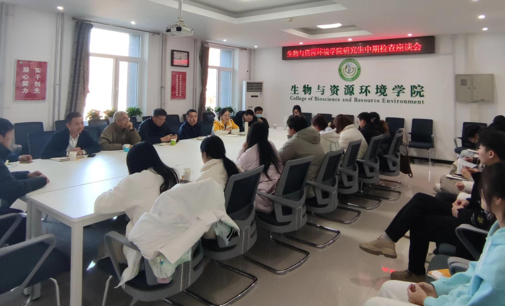 为落实2025-2026学年第二学期研究生教育教学期中检查工作要求,进一步提升研究生培养质量,生物与资源环境学院于2025年11月17日中午在生资楼B座216会议室召开研究生座谈会。党委书记杨宝东、研究生督导姬谦龙与靳永胜、各学位点及专项班/科技小院负责人、研究生导师代表及各级研究生代表参会,会议由副院长薛飞燕主持。