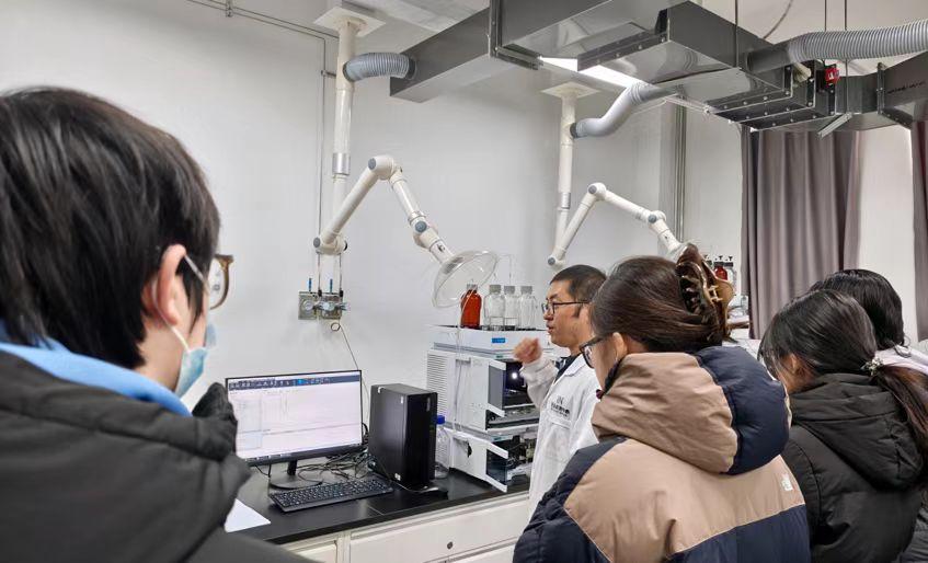 参观学习过程中,学生们紧跟技术人员,认真听讲,仔细观察仪器细节,并就操作要点、检测流程优化等问题进行交流。面对精密仪器,大家兴趣浓厚,现场学习氛围良好。指导老师结合课程内容,补充讲解仪器原理与实验课的关联,帮助学生梳理知识,实现理论与实践的有效衔接。