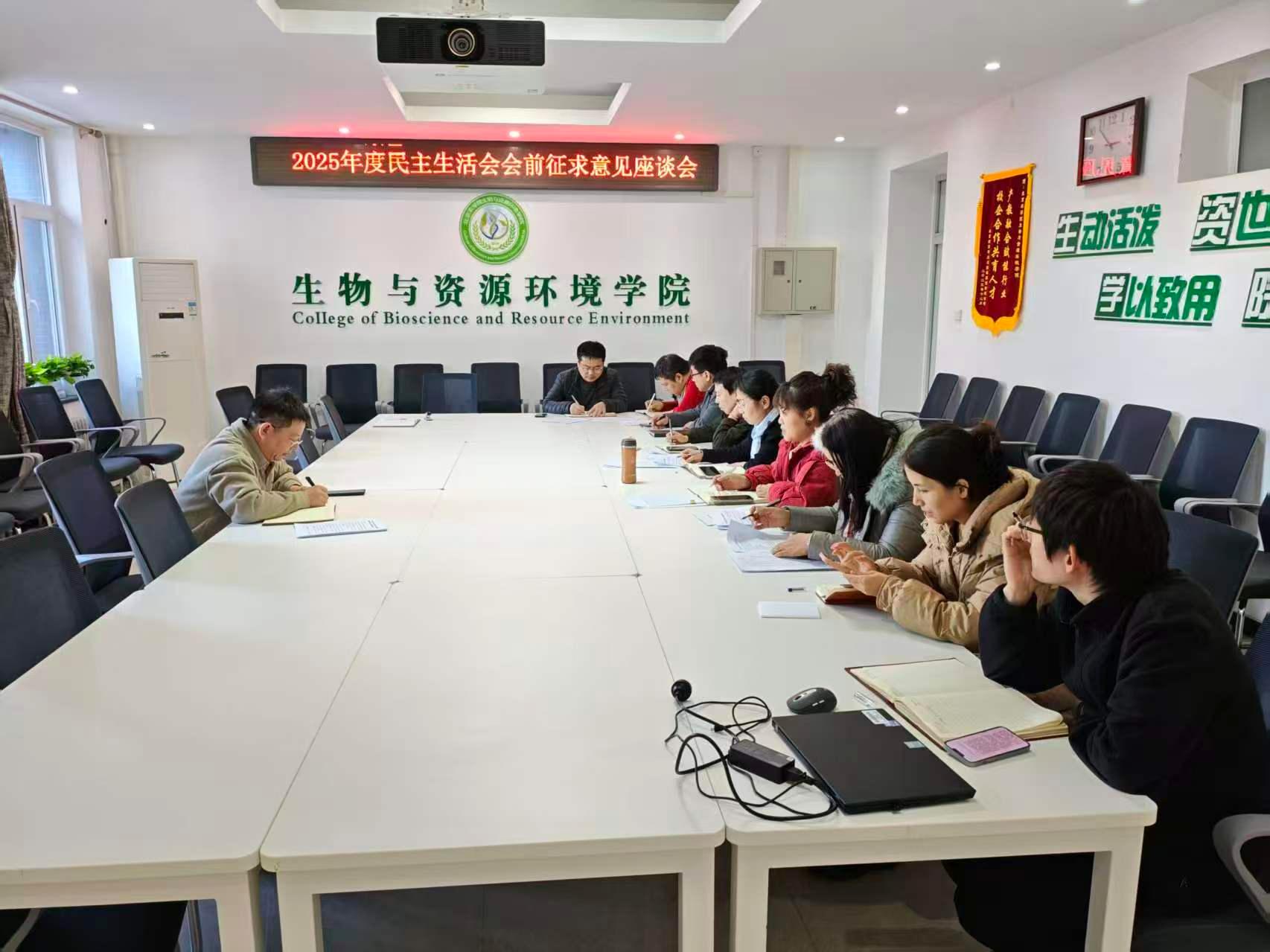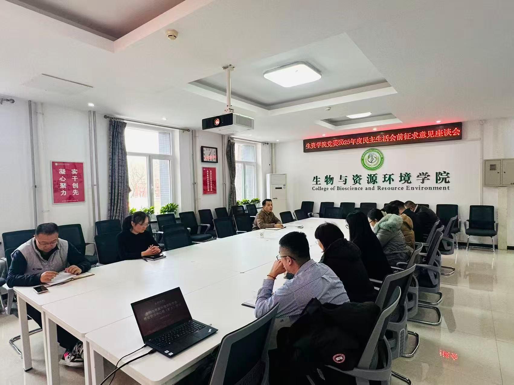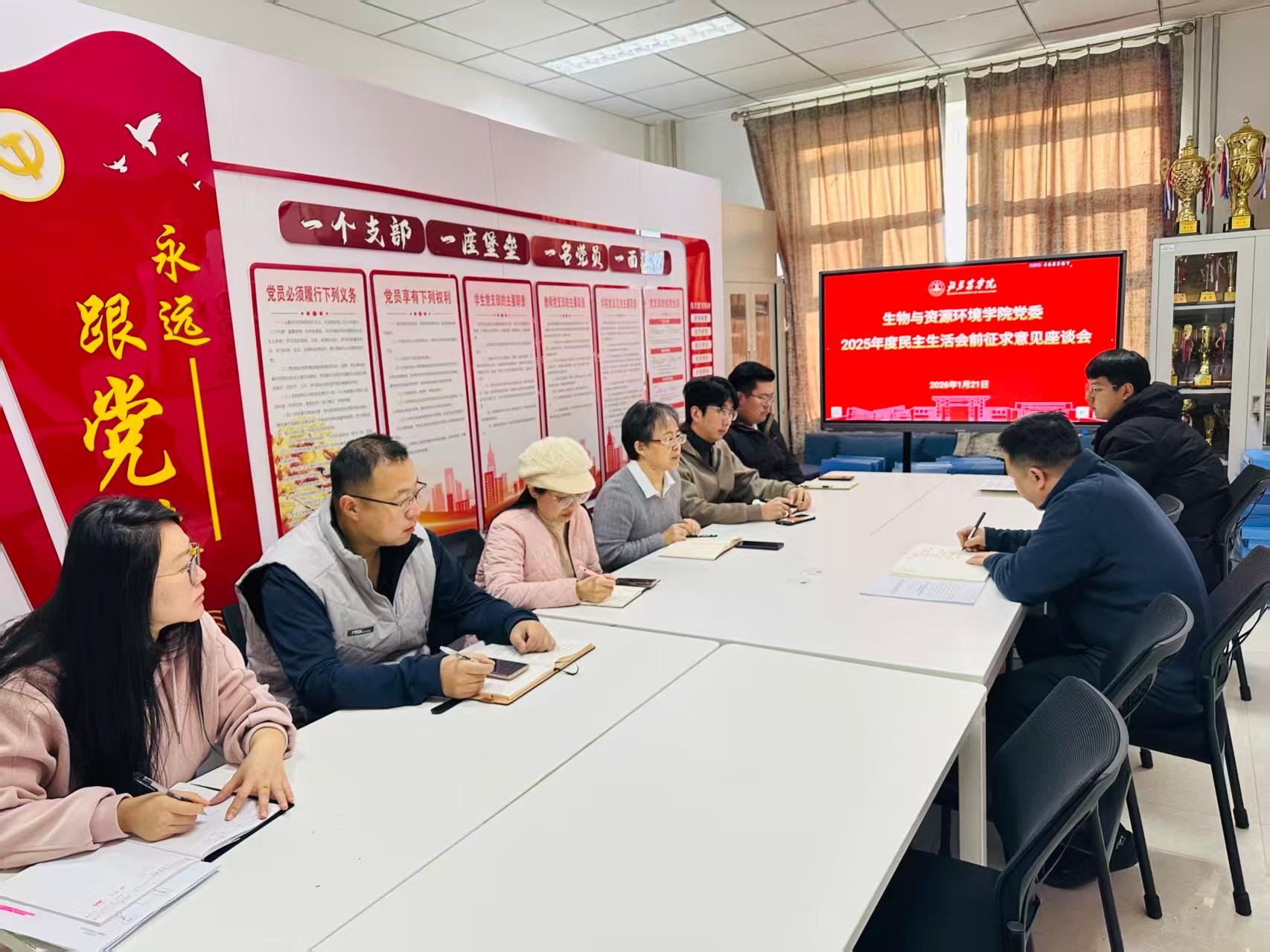为高质量开好2025年度领导班子民主生活会,生物与资源环境学院党委紧扣会议主题,组织学院领导班子成员根据各自分管工作领域,分别主持召开多场征求意见座谈会。