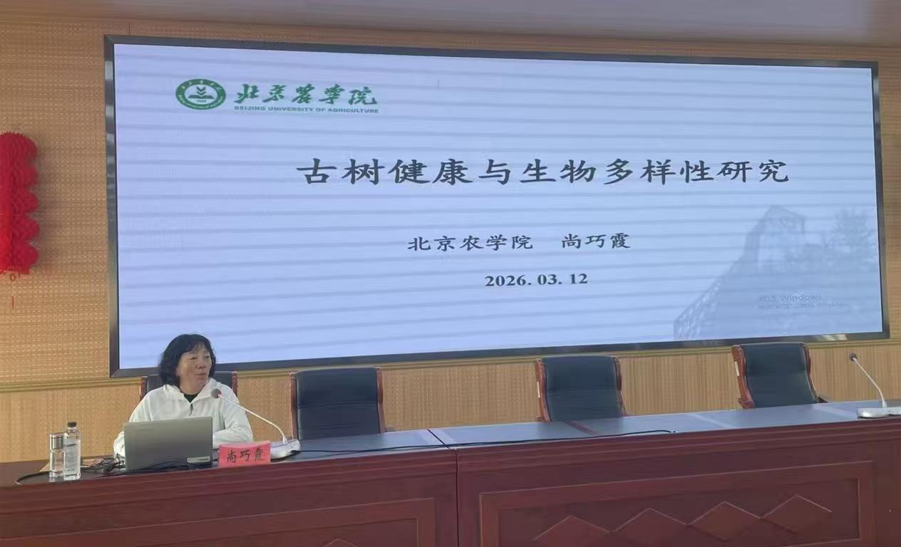 3月12日植树节当天,延庆区生态环境局四楼会议室内气氛热烈,一场聚焦“古树健康与生物多样性”的专题讲座正在这里举行。这是由延庆区委生态文明建设委员会办公室主办的“生态文明大讲堂”专题培训班的重要一环。北京农学院生物与资源环境学院党委副书记、院长尚巧霞教授受邀担任主讲嘉宾,为延庆区相关委办局、各乡镇的领导干部带来了一场关于古树保护的前沿科技课。