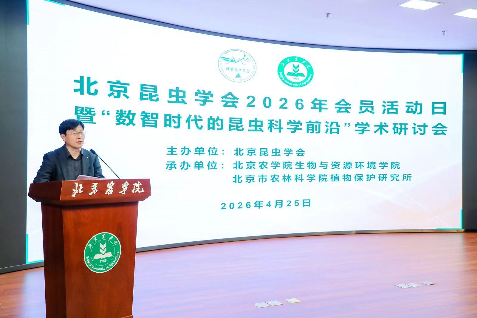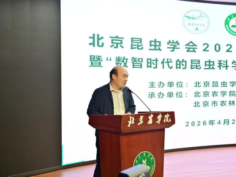 4月25日,北京昆虫学会2026年会员活动日暨“数智时代的昆虫科学前沿”学术研讨会在我校图书馆报告厅隆重召开。本次活动由北京昆虫学会主办,北京农学院生物与资源环境学院、北京市农林科学院植物保护研究所联合承办。中国农业科学院原院长、中国工程院吴孔明院士,北京昆虫学会名誉理事长张芝利,北京科技社团服务中心王掬周,北京市农林科学院植物保护研究所副所长赵尔成,北京农学院党委常委、副院长曹志军,北京农学院生物与资源环境学院党委书记杨宝东、院长尚巧霞等领导和嘉宾应邀出席了本次活动,共计约280余名学会会员参会。