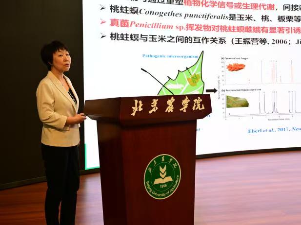 北京农学院杜艳丽教授分享了《微生物介导的桃蛀螟与寄主植物互作关系研究》的最新成果,深入解析了微生物与害虫、寄主植物间的复杂互作机制,为绿色防控技术的研发提供了新的思路。