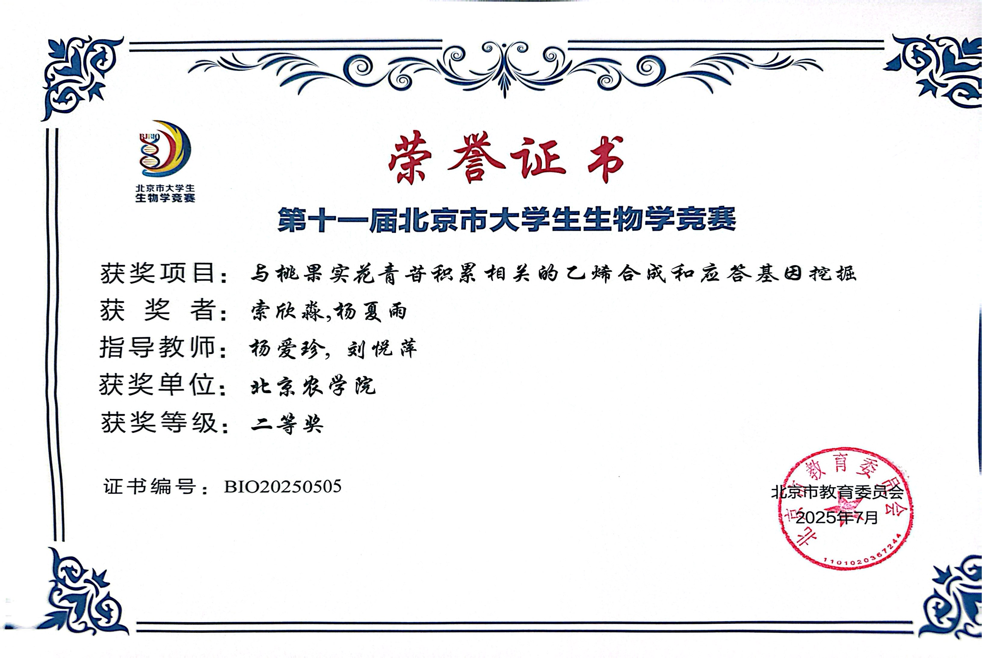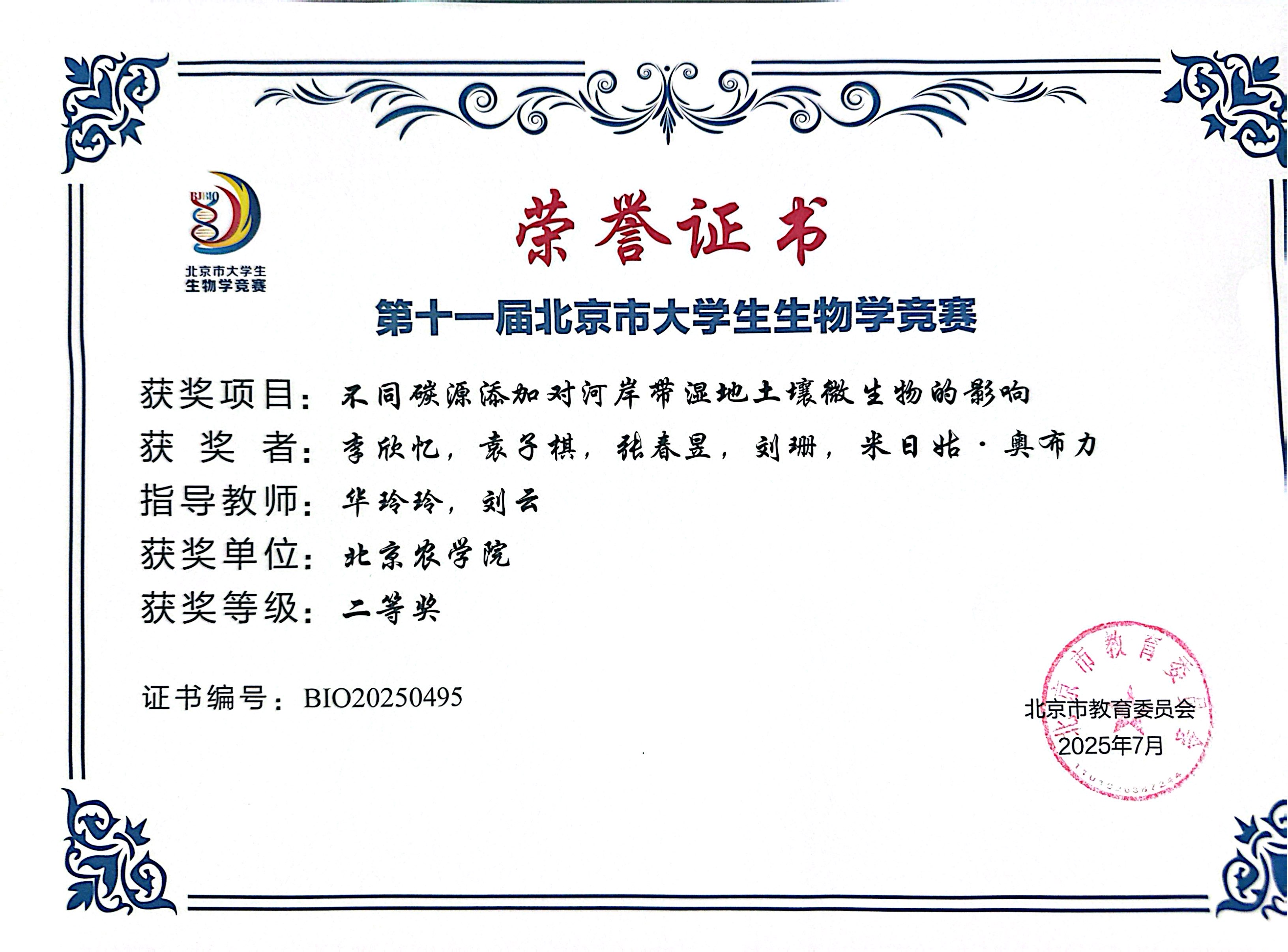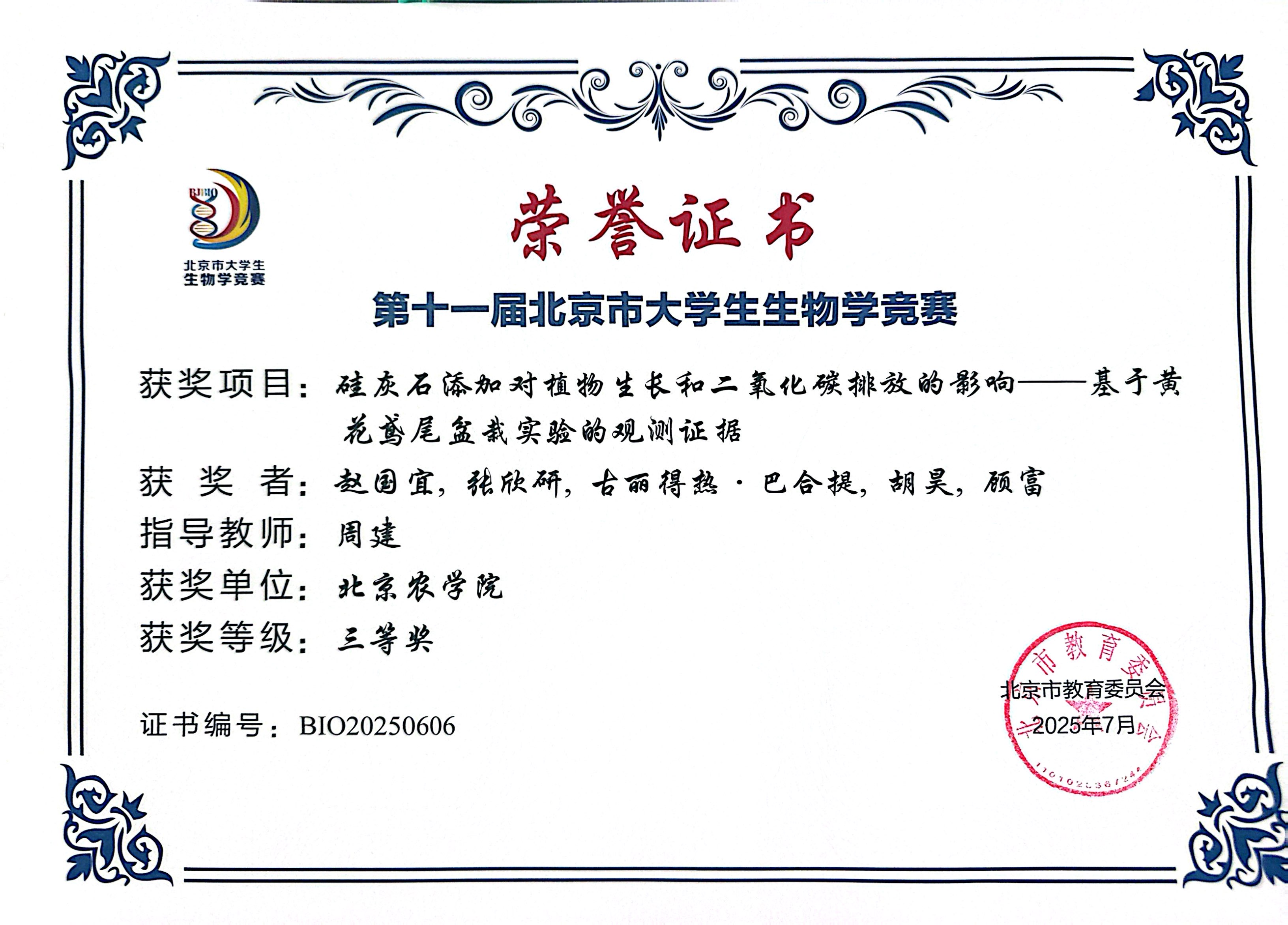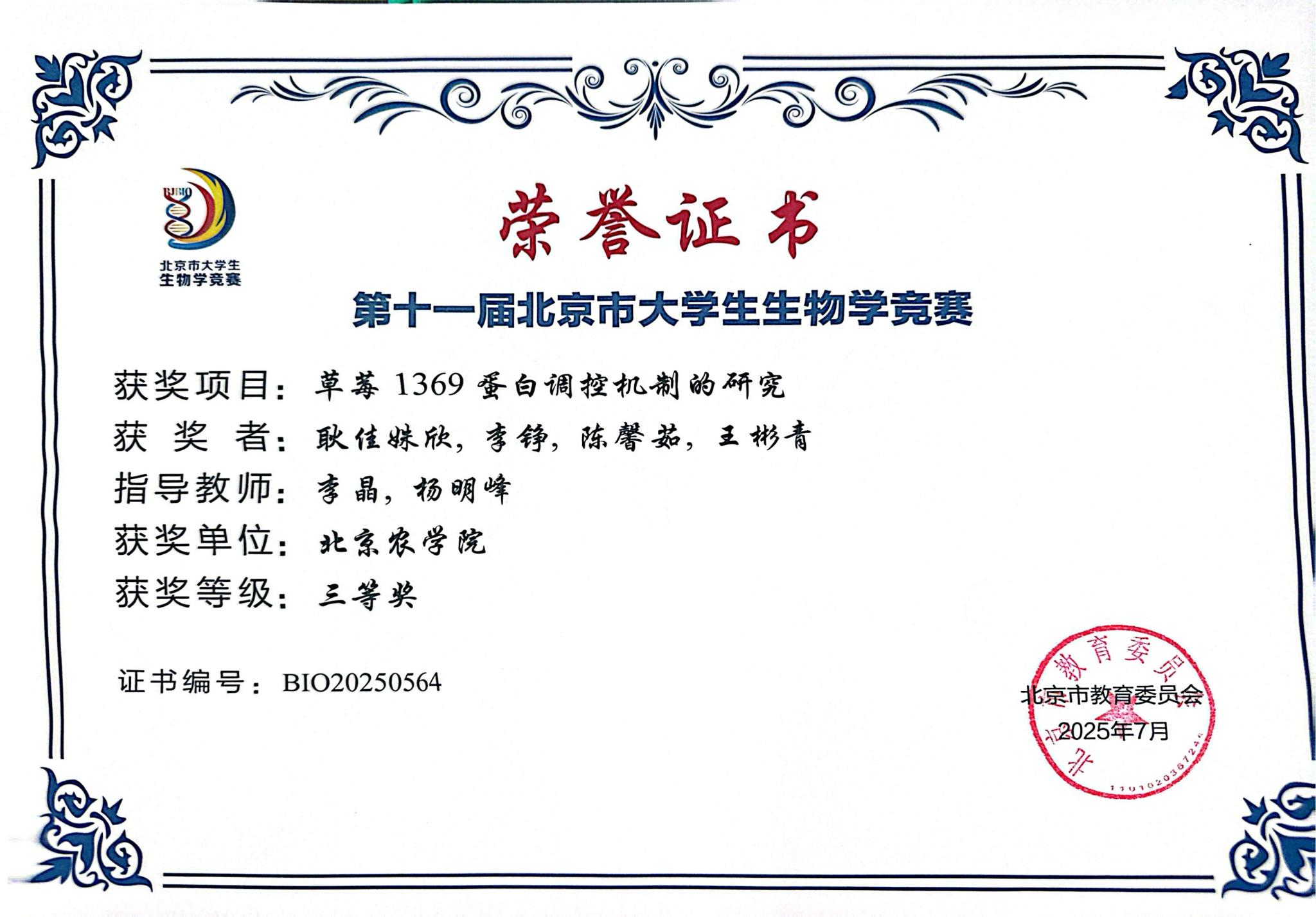 第十一届北京市大学生生物学竞赛 我校师生参赛获奖