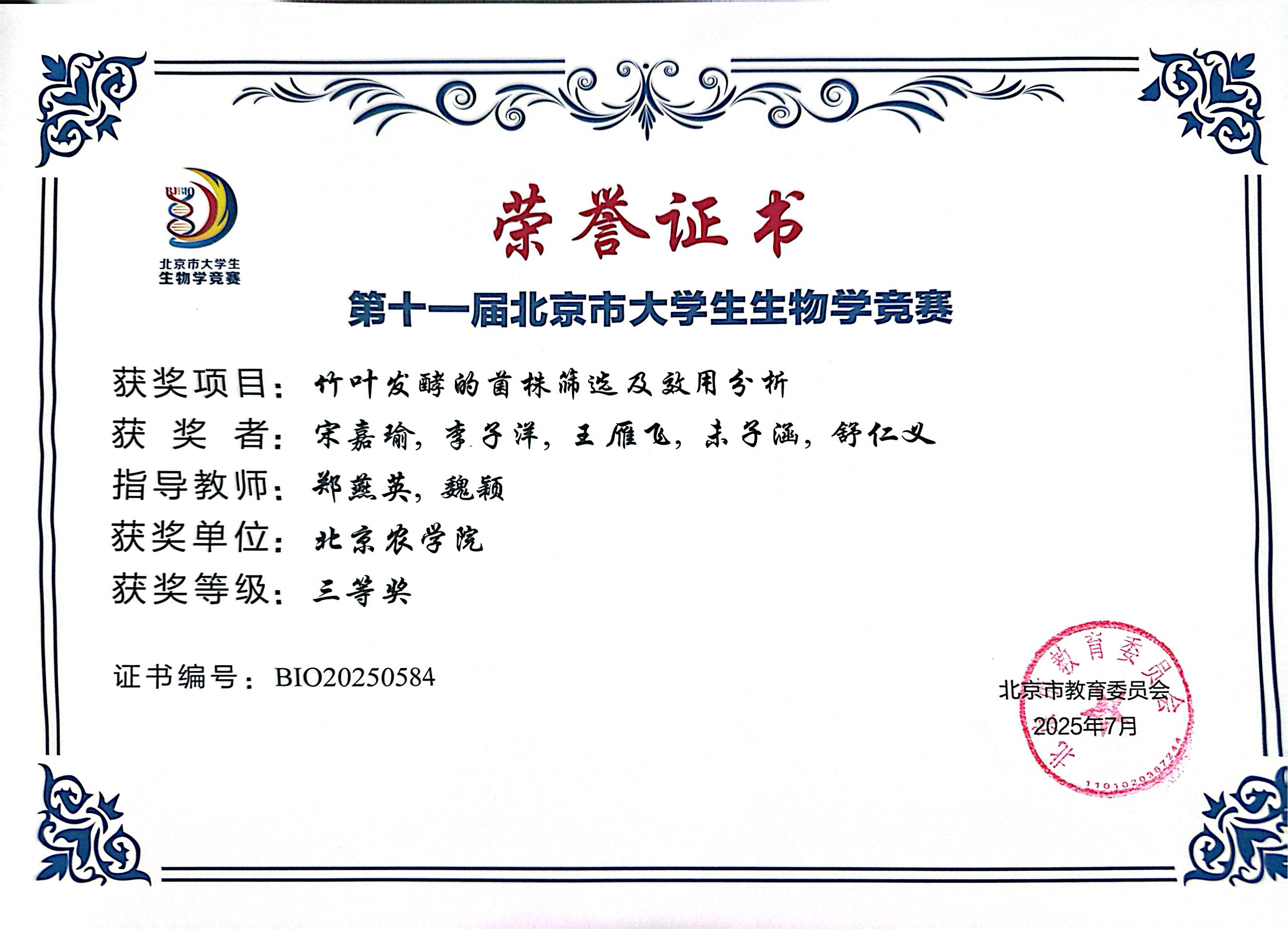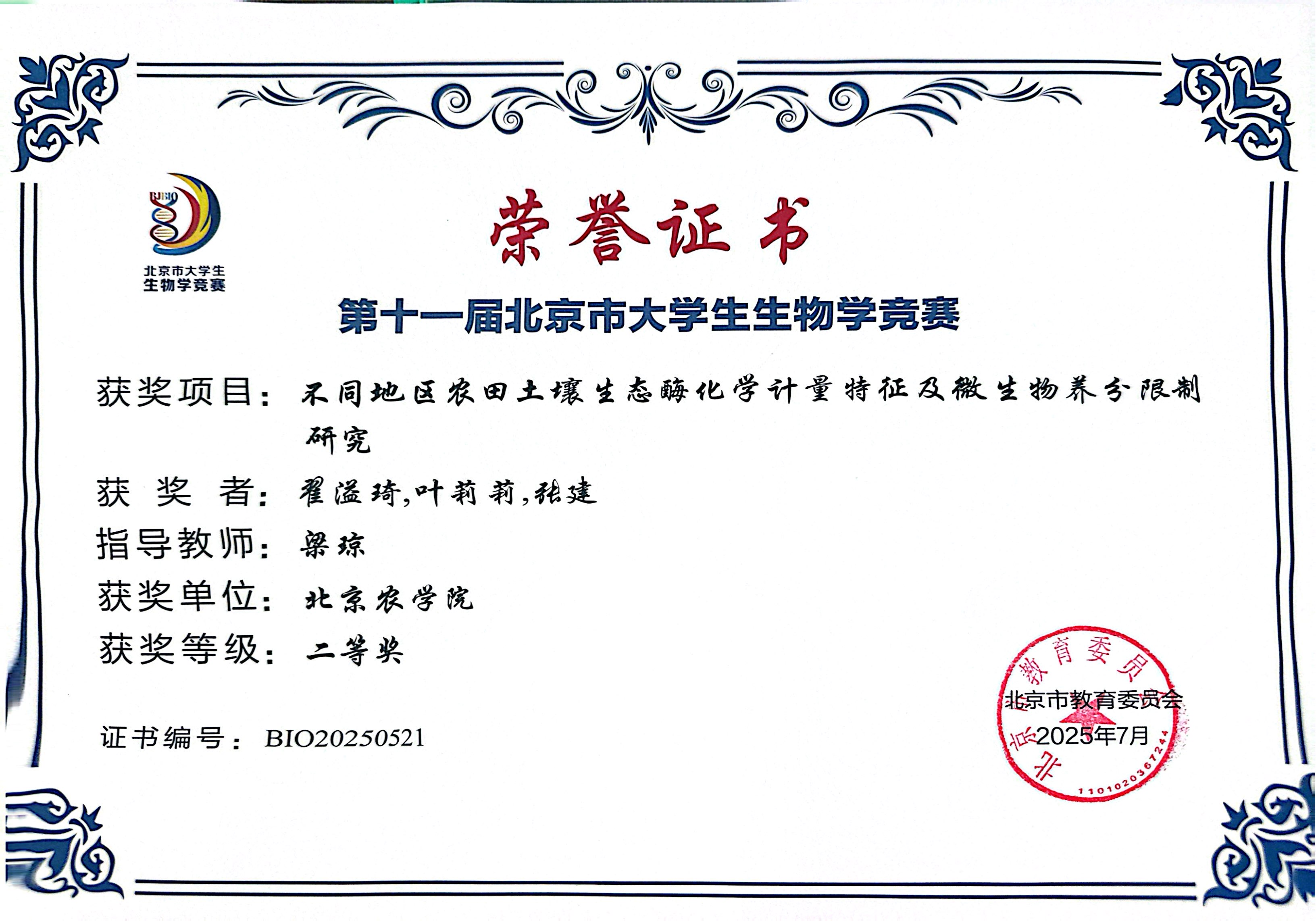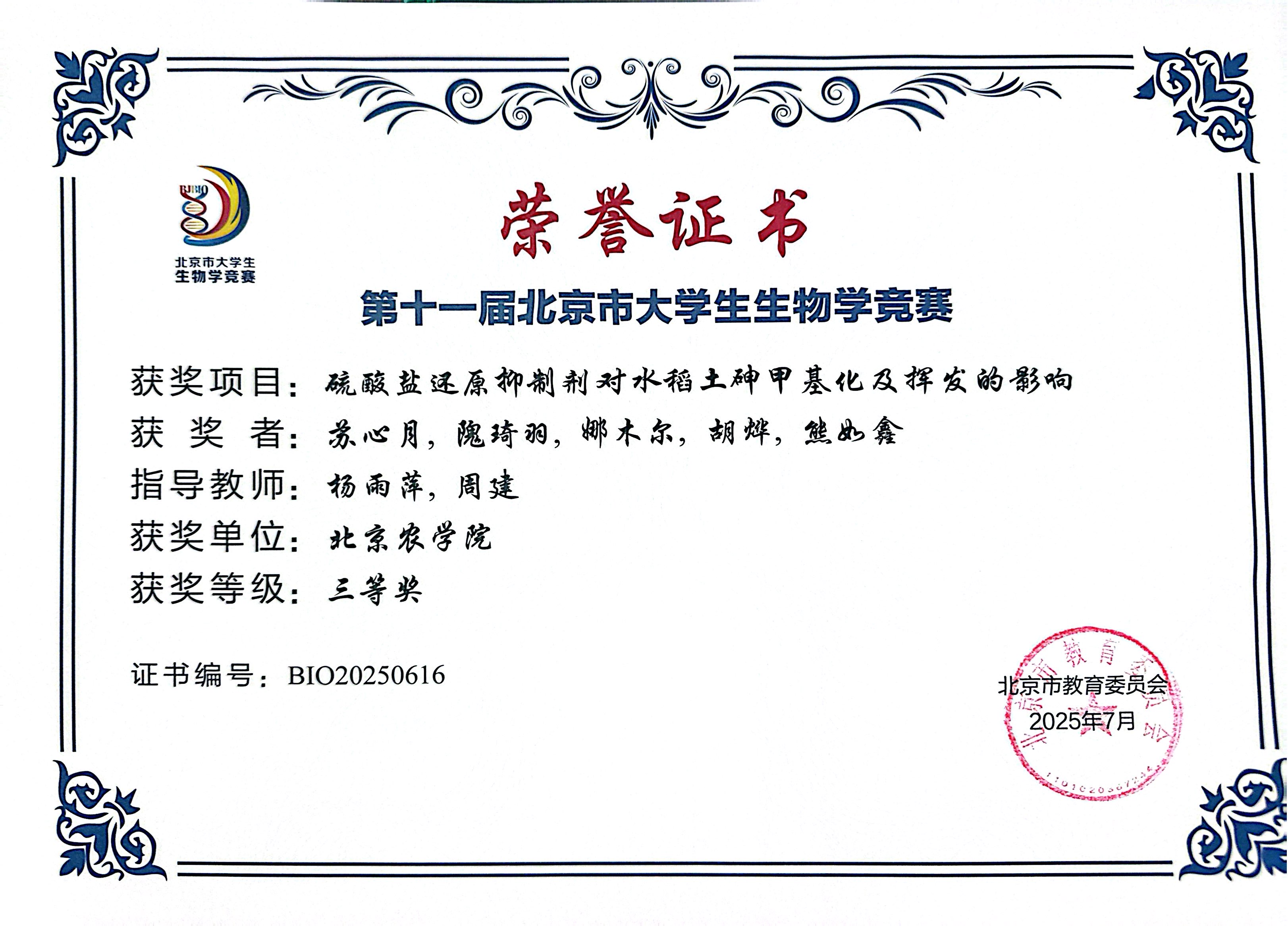 第十一届北京市大学生生物学竞赛 我校师生参赛获奖