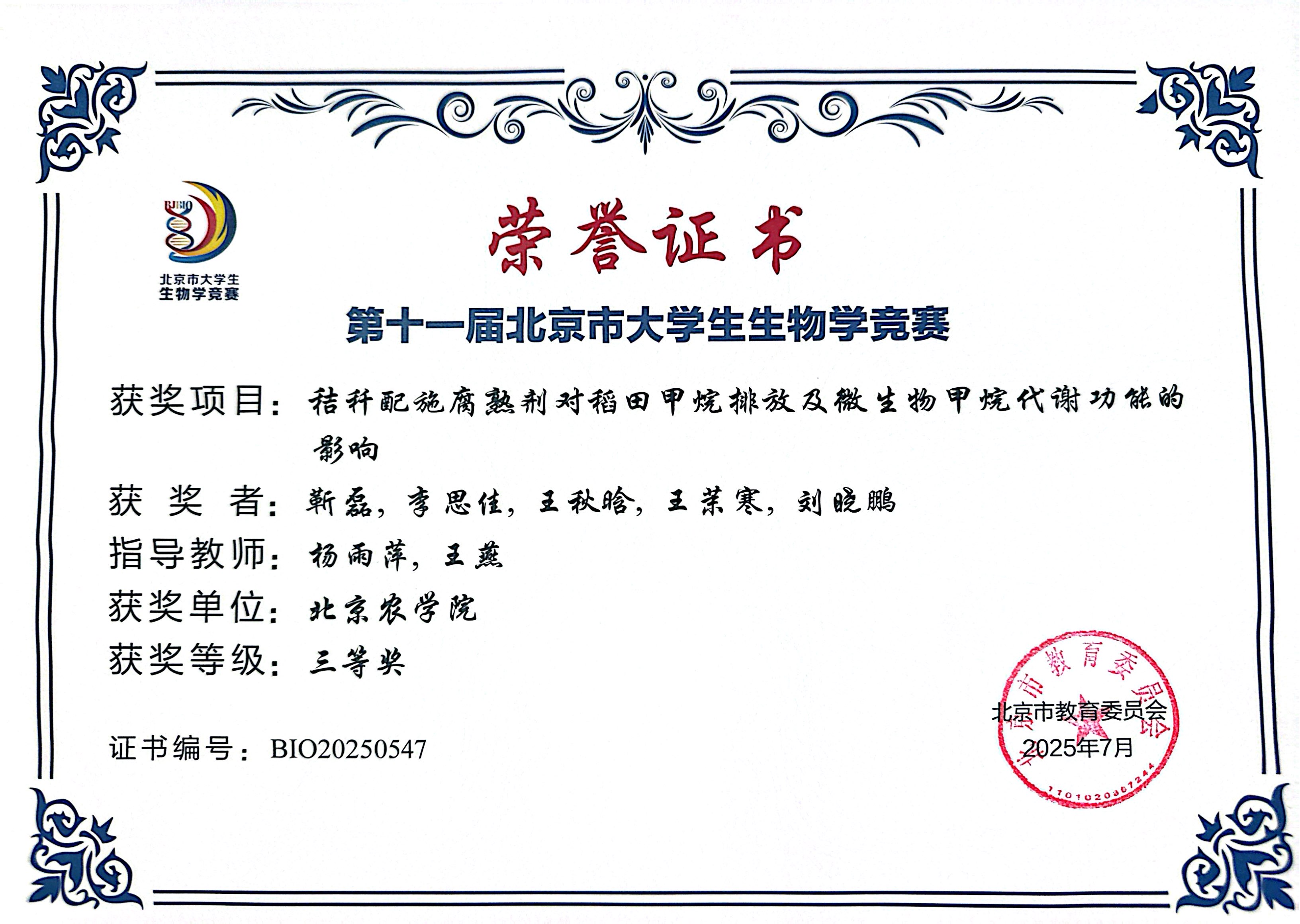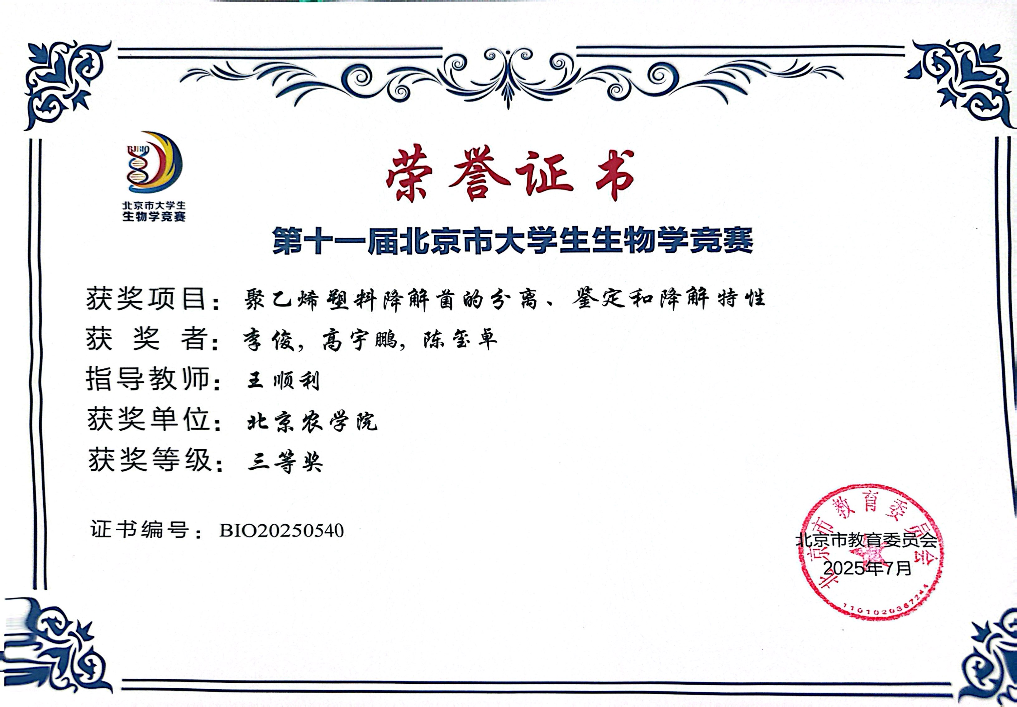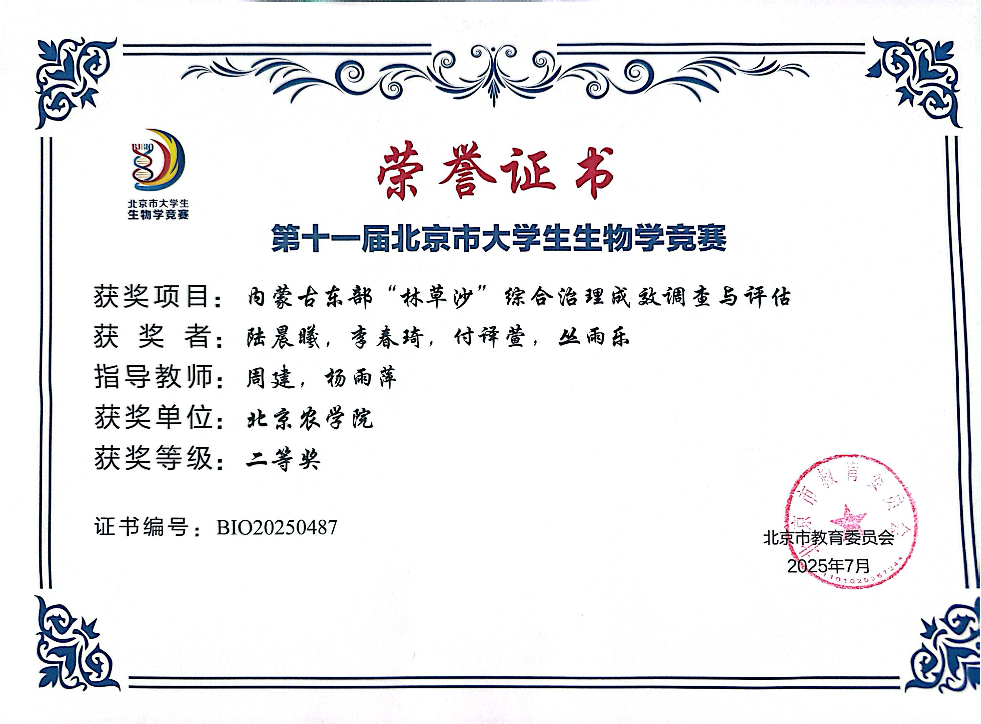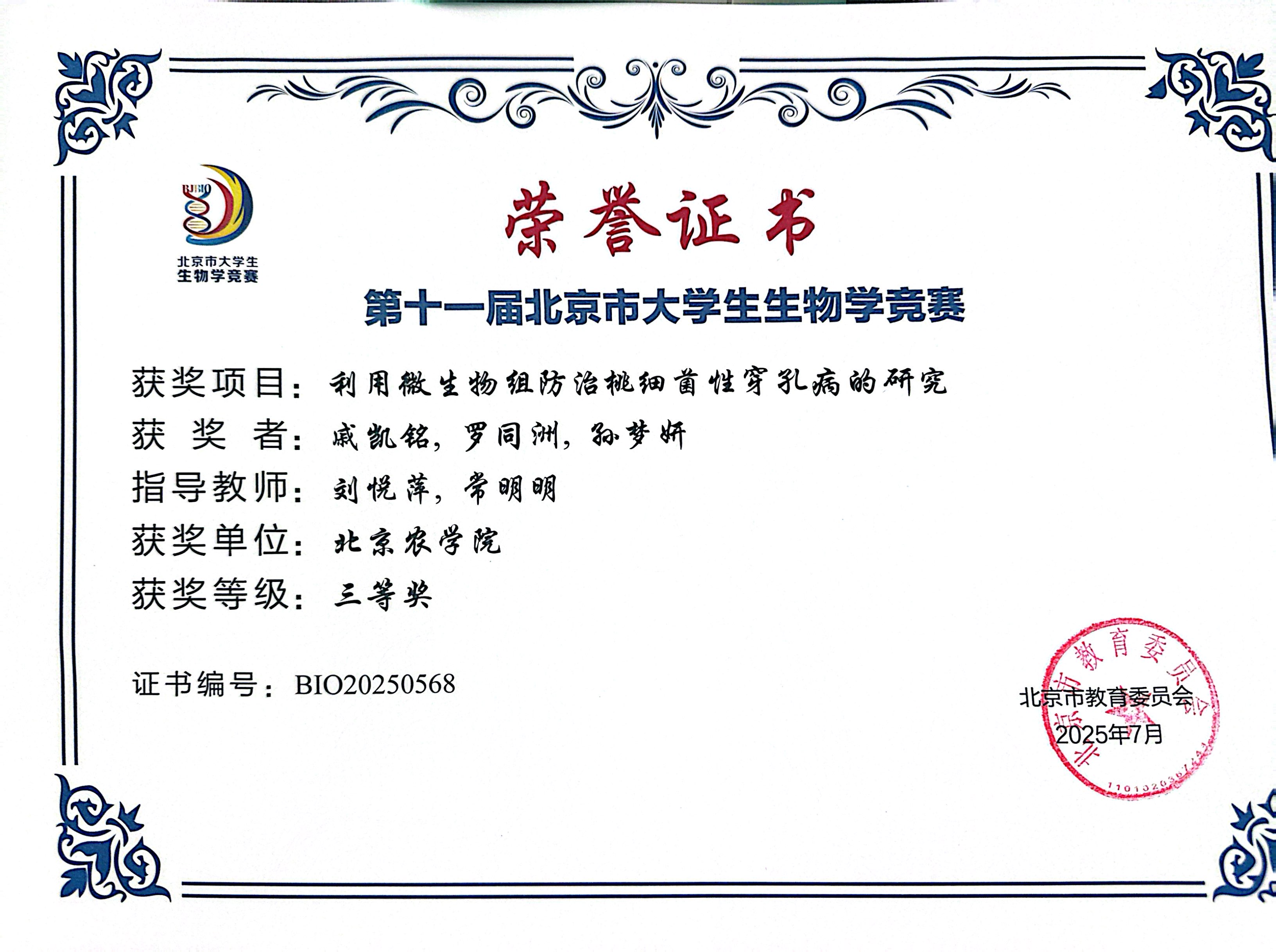 第十一届北京市大学生生物学竞赛 我校师生参赛获奖