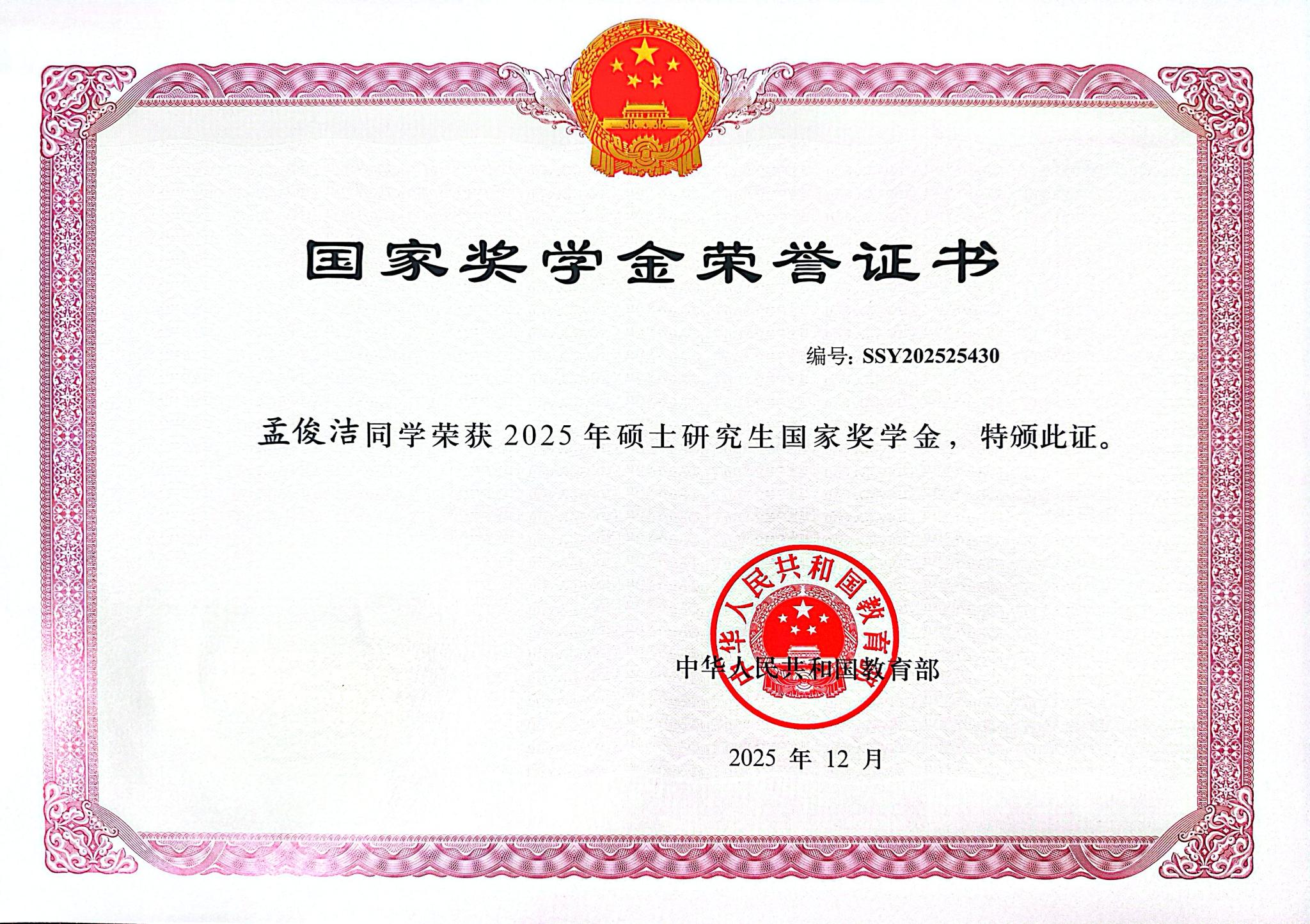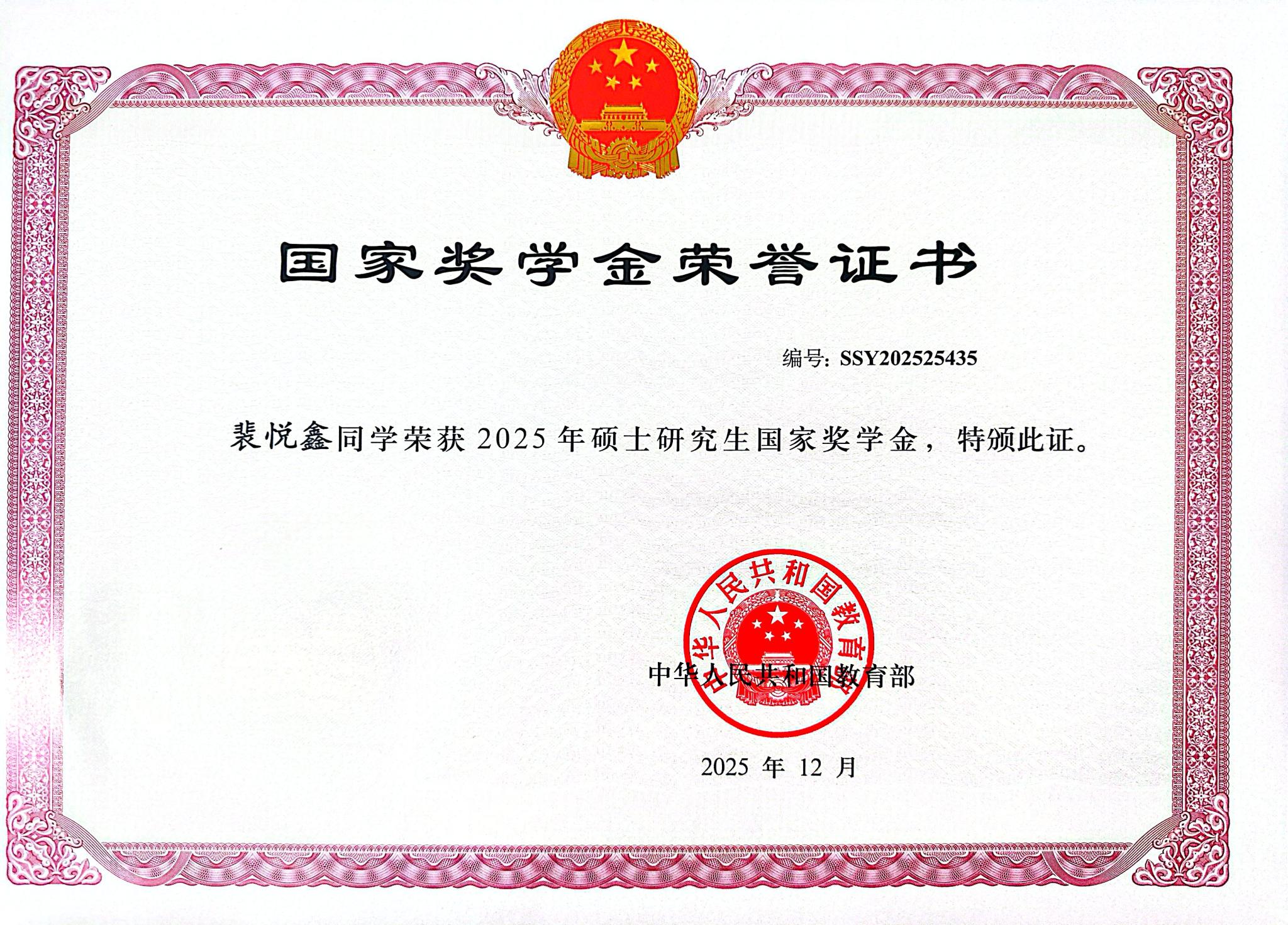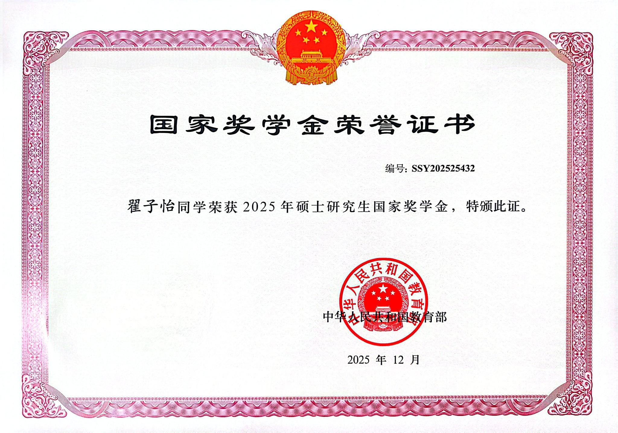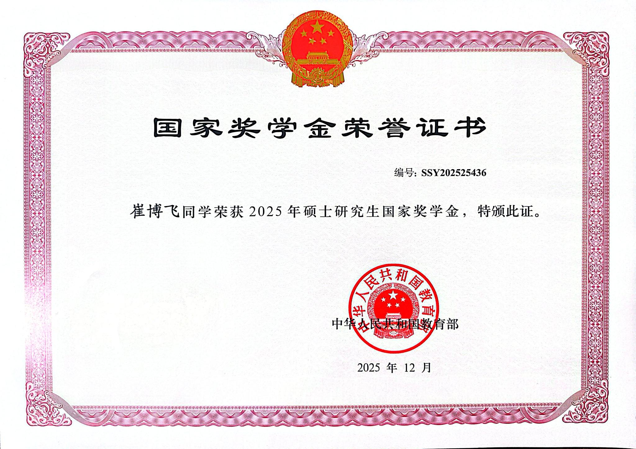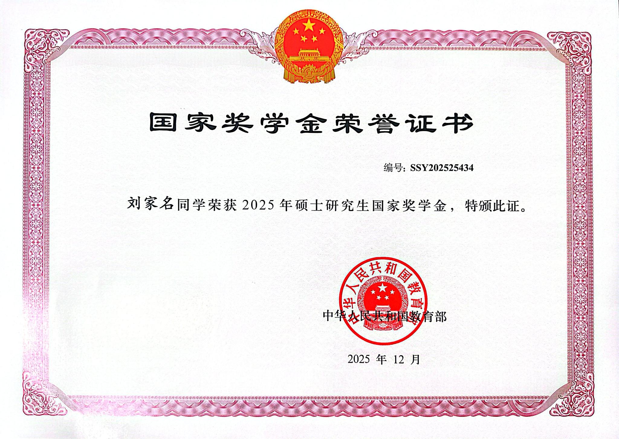喜报!生物与资源环境学院2025年7位硕士获国家奖学金证书
